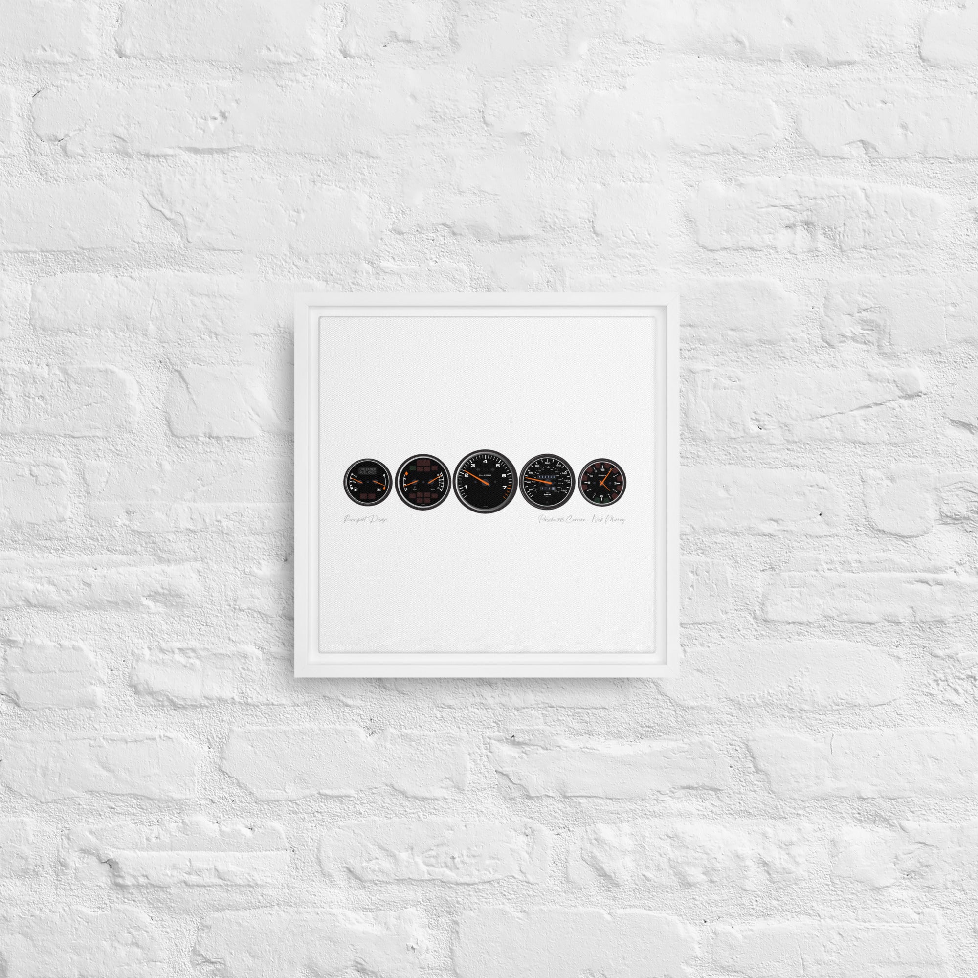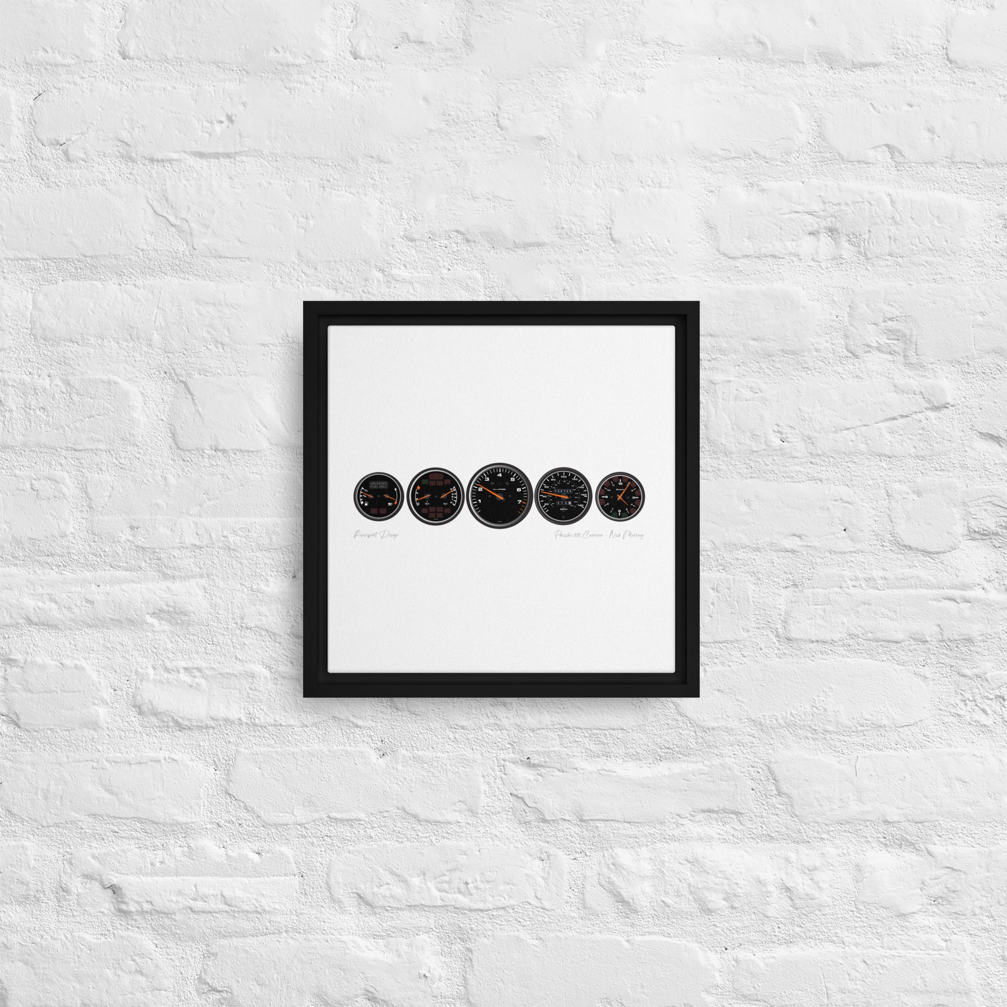 - The framed canvases with brown and black frames have a black inside around the canvas, and the canvases with white frames have a white inside around the canvas.