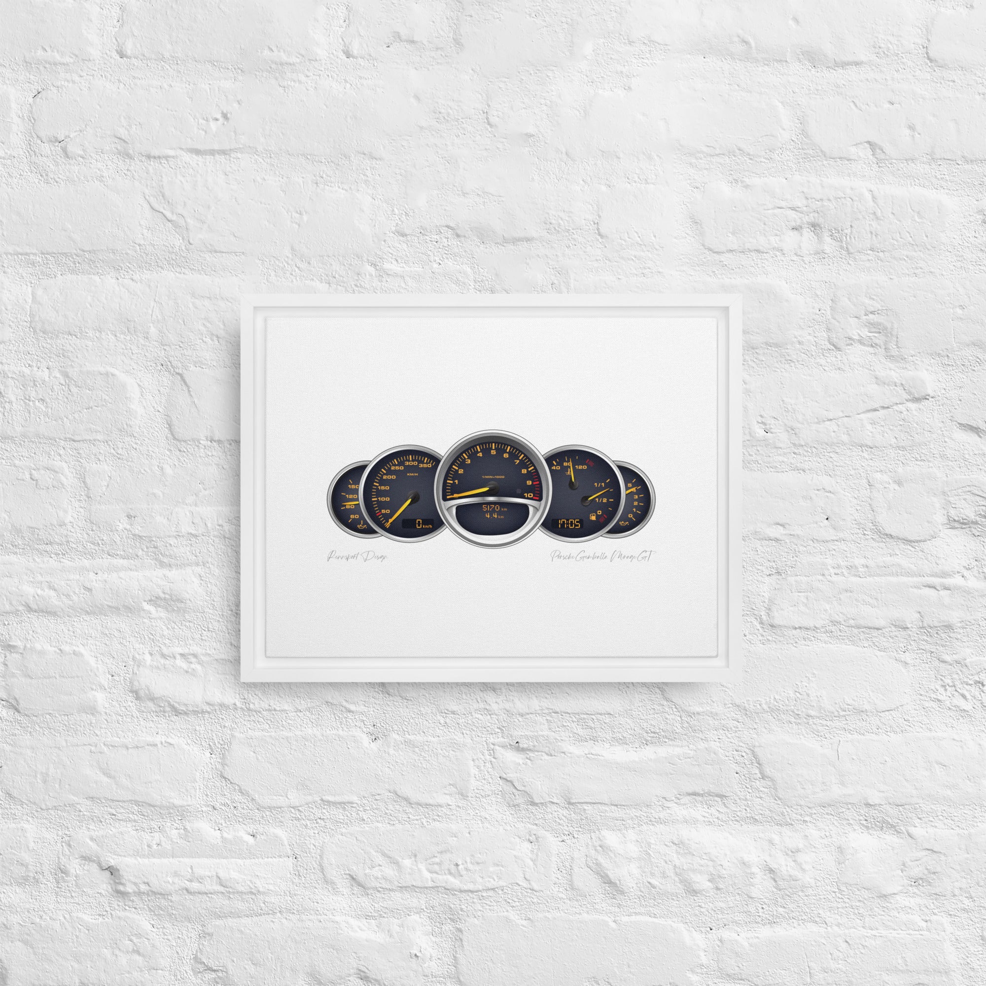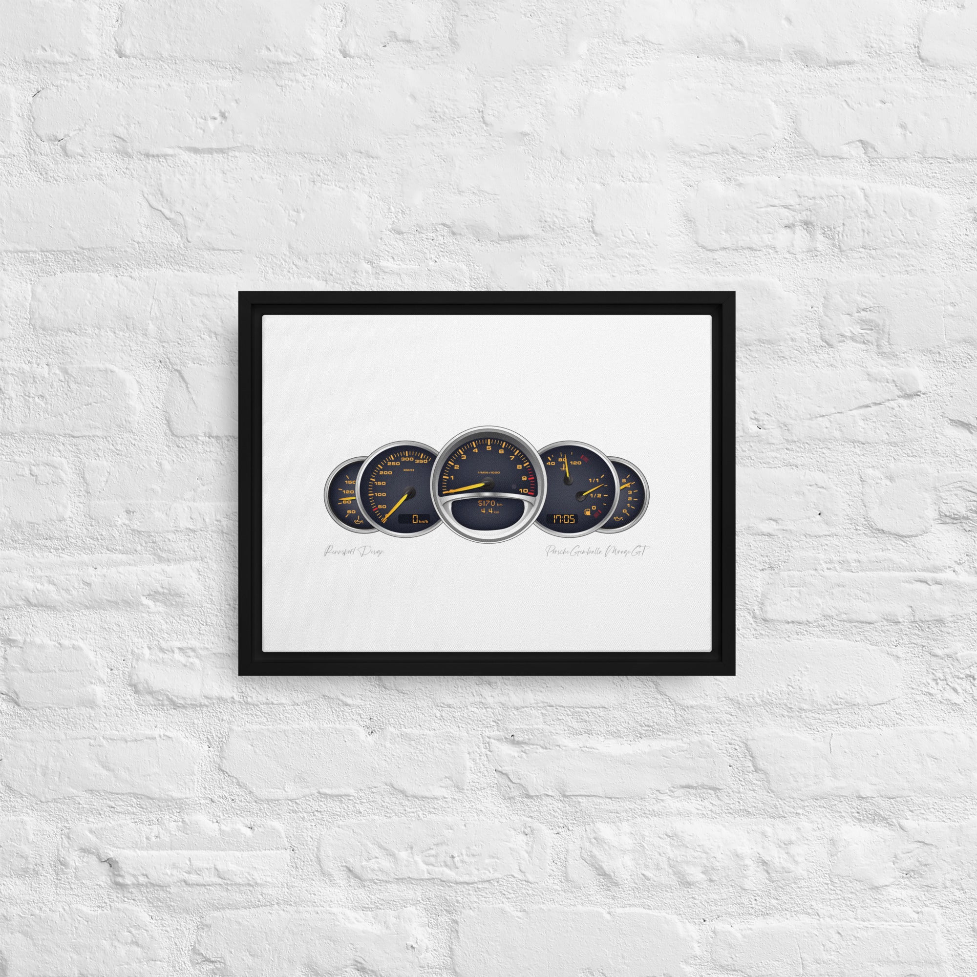 - The framed canvases with brown and black frames have a black inside around the canvas, and the canvases with white frames have a white inside around the canvas.